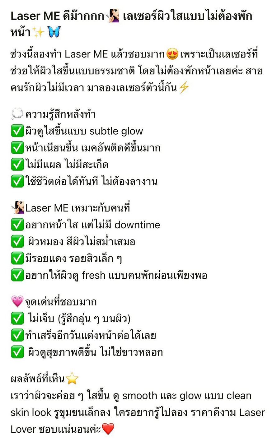 โปรแกรม LaserME ดีมากกก >>เลเซอร์ผิวใสแบบไม่ต้องพักหน้า